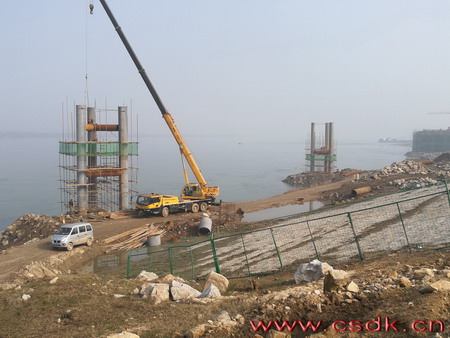 在預(yù)報(bào)最冷的冬天,湖南航務(wù)公司給了我們長沙大秦一個(gè)深情的擁抱,讓我們參與在岳陽長江邊安裝浮動船塢定位樁。